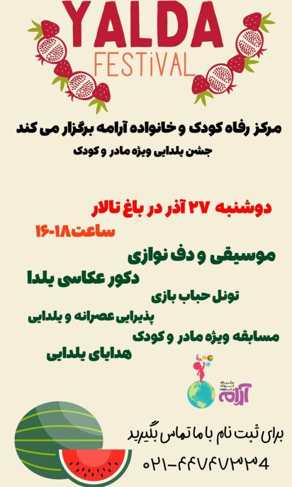 فستیوال شب یلدا 1402 آرامهAramekidsدسامبر 4, 2023قدمی مانده به یلدابه شب خاطره انگیز و بلندبه سپیدی زمستان و اناری که دلش قصه ی یکرنگی هاست مرکز رفاه کودک وخانواده آرامه ... ادامه مطلب